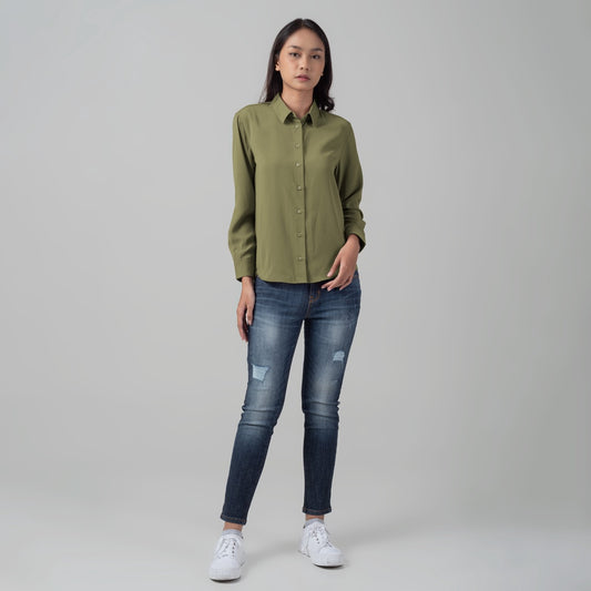 Benhill Kemeja Wanita " Seori" Tops Lengan Panjang Olive 867-39779
