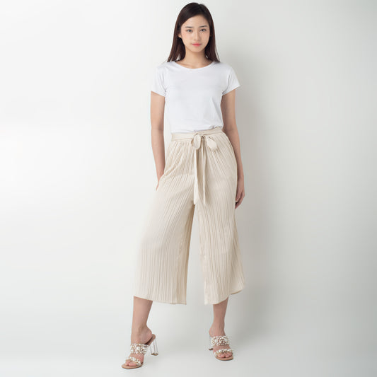 Benhill Celana Wanita "Yoana" Pants Pleated Cullotes Pinggang Karet Dengan Tali Pinggang Cream 277-39590