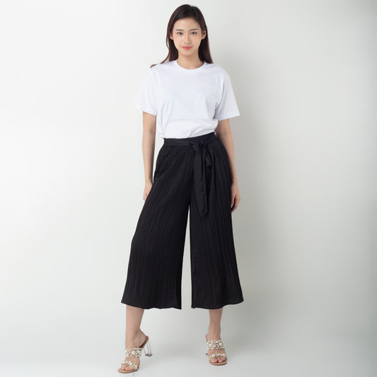Benhill Celana Wanita "Yoana" Pants Pleated Cullotes Pinggang Karet Dengan Tali Pinggang Black 276-39290