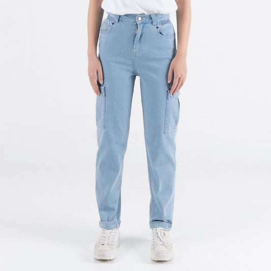 Benhill Celana "Miso" Wanita Denim High Waist Cargo Pants Light-Medium Blue A556-A557