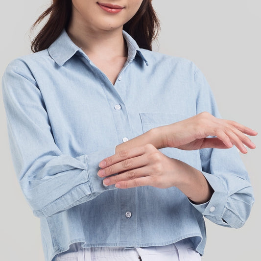 Benhill Kemeja Crop Top Wanita Denim Lengan Panjang Light Blue 820-19384