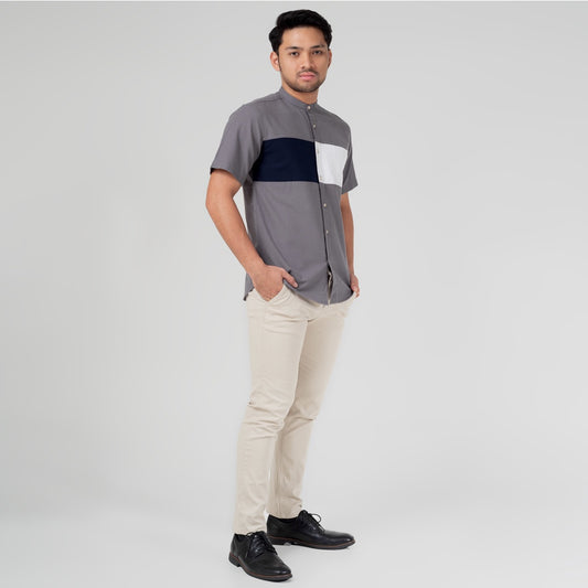 Benhill Kemeja Koko Pria Linen Lengan Pendek Grey Combination 50052-16610