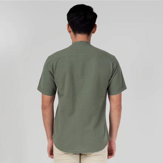 Benhill Kemeja Koko Pria Linen Polos Pendek Hijau Army 50008-16H10