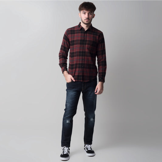 Benhill Kemeja Pria Flannel Lengan Panjang Kotak Maroon 13-11433