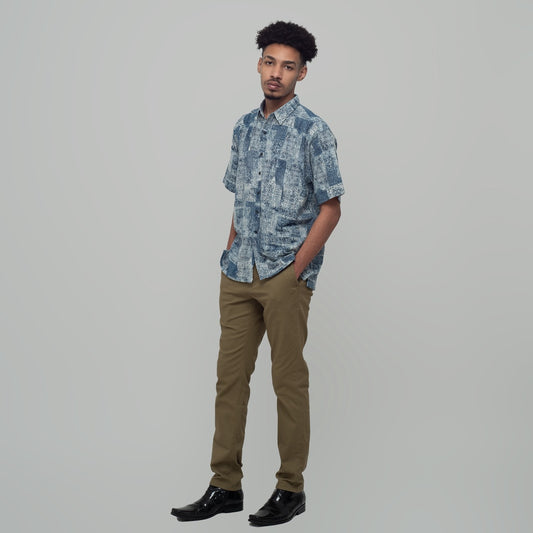 Benhill Kemeja Pria Linen Printing Lengan Pendek Biru 28816-46602