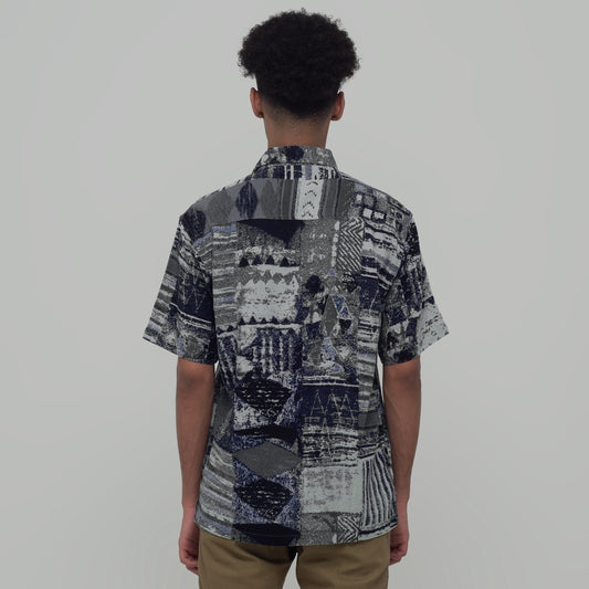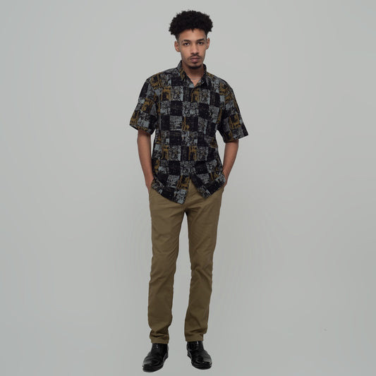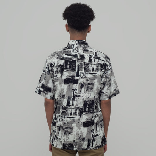Benhill Kemeja Pria Linen Printing Lengan Pendek Black 28806-46202