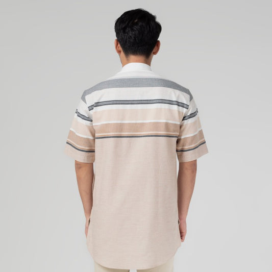 Benhill Baju Koko Pria Qurta Kurta Stripe Pendek Putih 29954-3211H