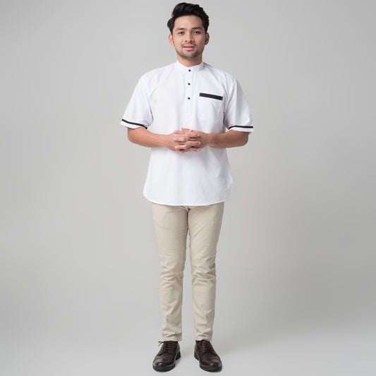 Benhill Baju Taqwa Koko Pria Qurta Kurta Lengan Pendek Putih 29953-3211H