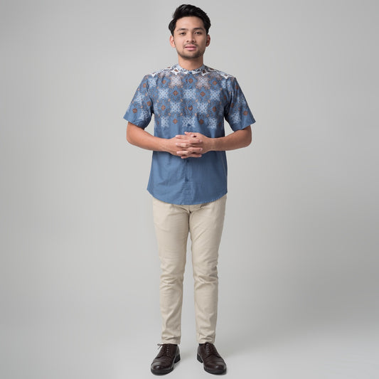 Benhill Kemeja Koko Pria Cotton Printing Lengan Pendek Blue 50011-46310
