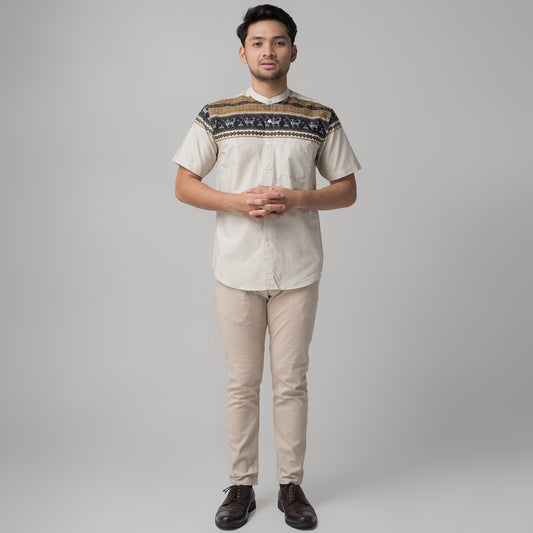 Benhill Kemeja Koko Pria Cotton Printing Lengan Pendek Cream 29811-46910