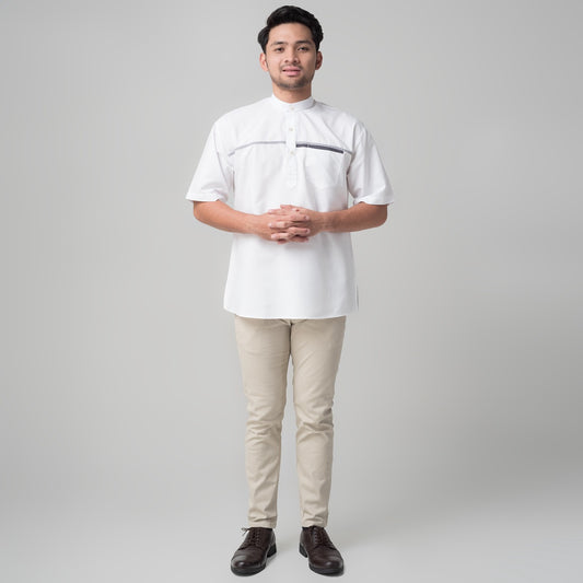 Benhill Kemeja Pria Koko Qurta Lengan Pendek Putih 29952-3211H