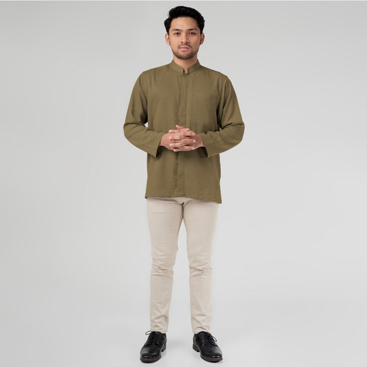 Benhill Kemeja Koko Pria "Tenun Sultan" Cotton Dobby Lengan Panjang Sage Green 29251-52-36709