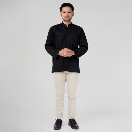 Benhill Kemeja Koko Pria "Tenun Sultan" Cotton Dobby Lengan Panjang Black 29231-32-36209