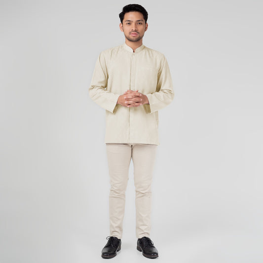 Benhill Kemeja Koko Pria "Tenun Sultan" Cotton Dobby Lengan Panjang Beige 29235-36-36909