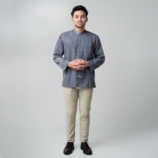 Benhill Kemeja Koko Pria "Tenun Sultan" Cotton Dobby Lengan Panjang Dusty Blue 29247-48-36309