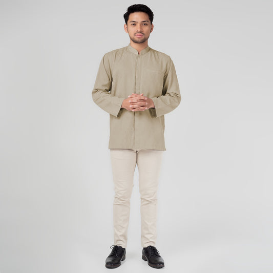 Benhill Kemeja Koko Pria "Tenun Sultan" Cotton Dobby Lengan Panjang Oat 29241-42-36509