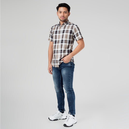 Benhill Kemeja Pria Herringbone Lengan Pendek Kotak Coklat 29427-11534