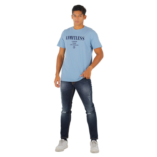 Benhill T-shirt Pria Grafis Katun 30s Combed Pendek Dusty Blue A97-A98-29368