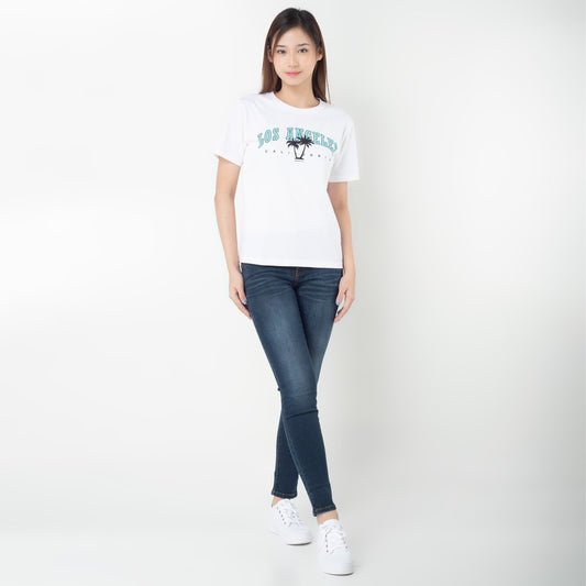 Benhill T-shirt Kaos Wanita Grafis Katun 24s Combed Lengan Pendek Putih 604-35186