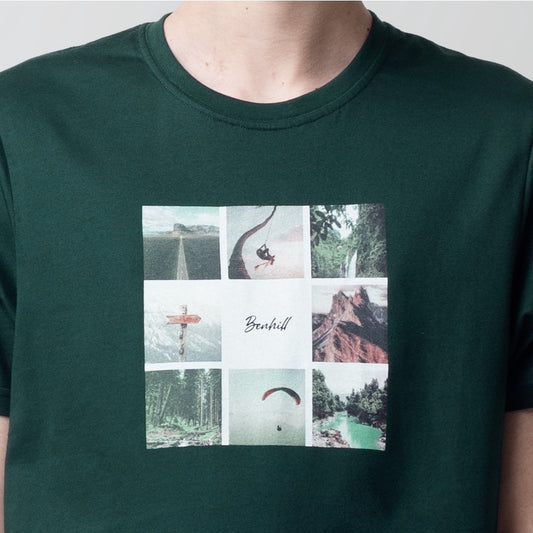 Benhill T-Shirt Grafis Katun 30s Combed Lengan Pendek Hijau Botol 462-481-39768