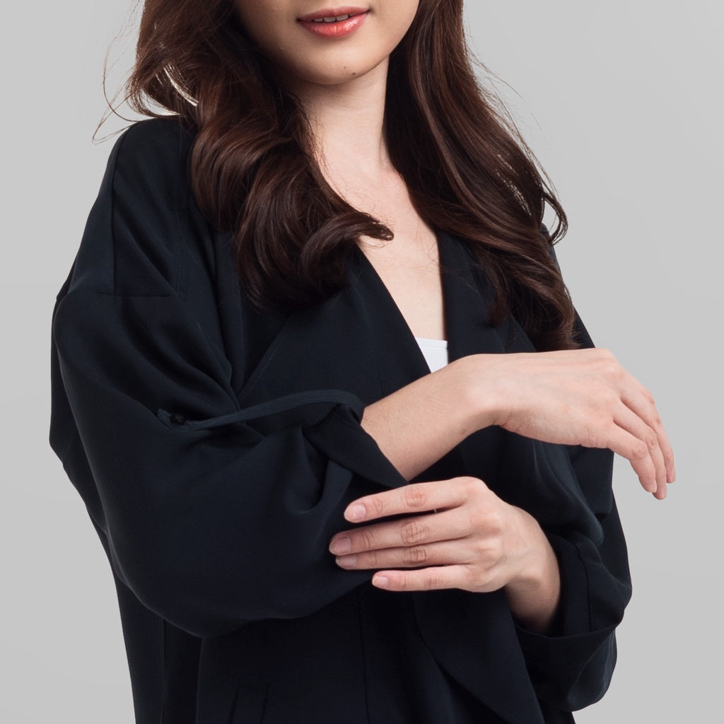 Outfit ini mempunyai lengan panjang dan bisa di lipat, ada 2 saku di depan..