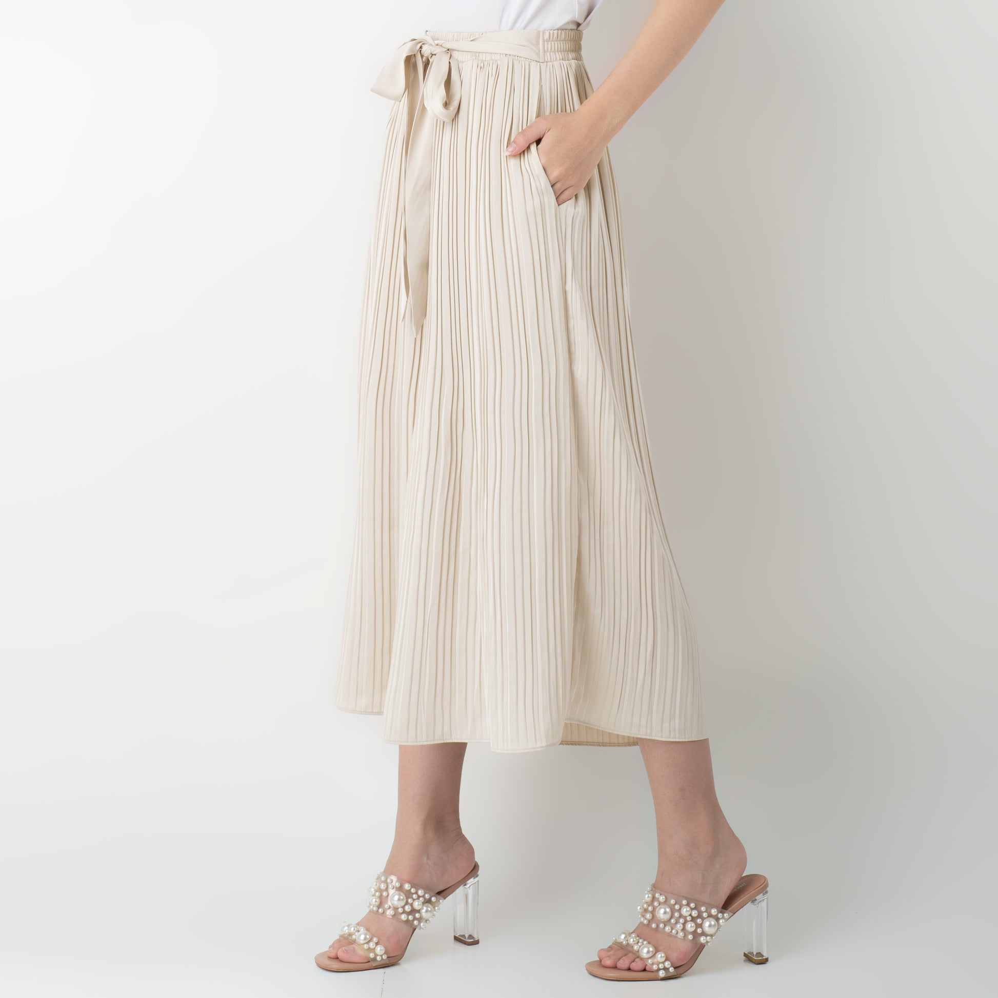 Benhill Celana Wanita "Yoana" Pants Pleated Cullotes Pinggang Karet Dengan Tali Pinggang Cream 277-39590