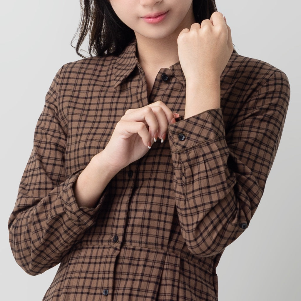 Benhill Gamis Wanita Flannel Lengan Panjang Kotak Coklat 1155-11530