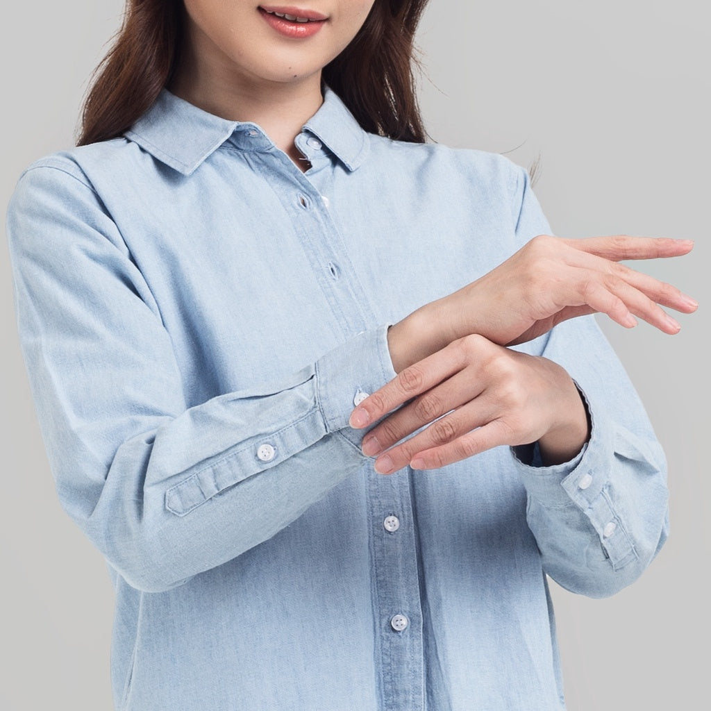 Benhill Kemeja Crop Top Wanita Denim Lengan Panjang Light Blue 820-19384