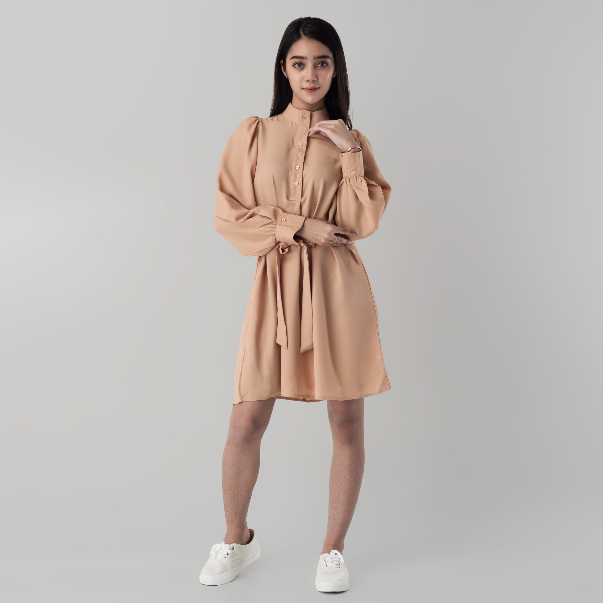 Tunik ini mempunyai model bawah lebar, lengan balon dan ada ikat pinggangnya