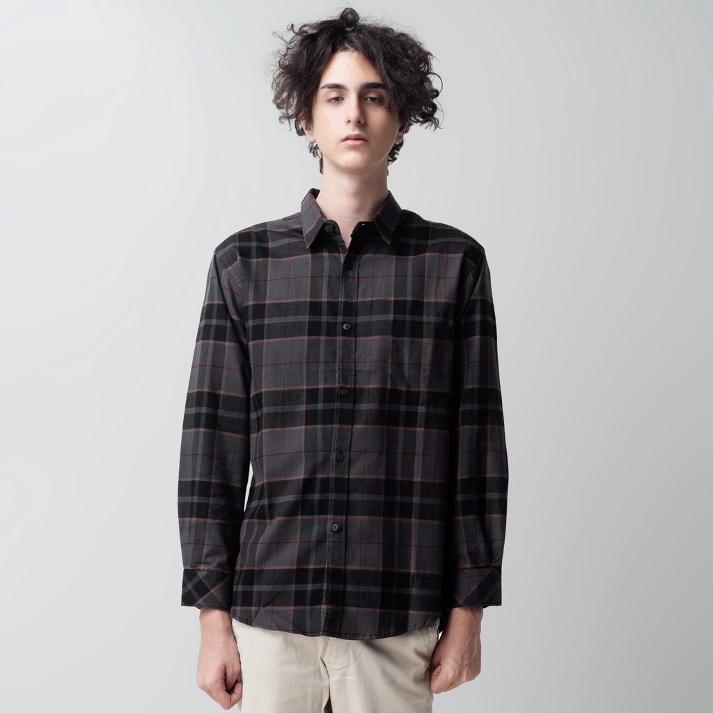 Benhill Kemeja Pria Flanel Panjang Kotak Abu 28180-11633