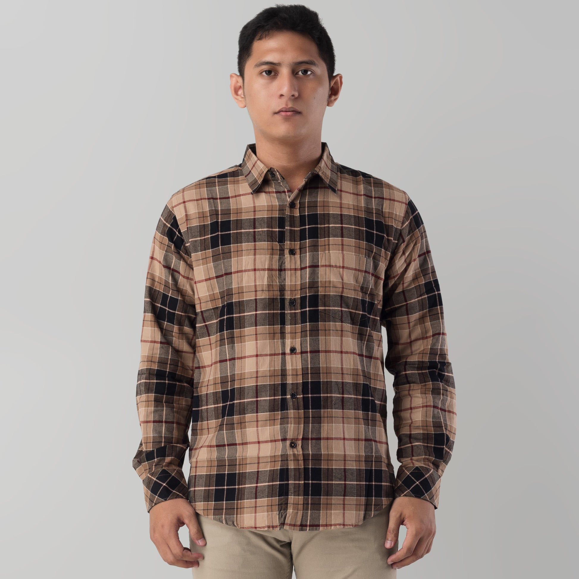 Benhill Kemeja Pria Flannel Lengan Panjang Kotak Coklat 28077-11533