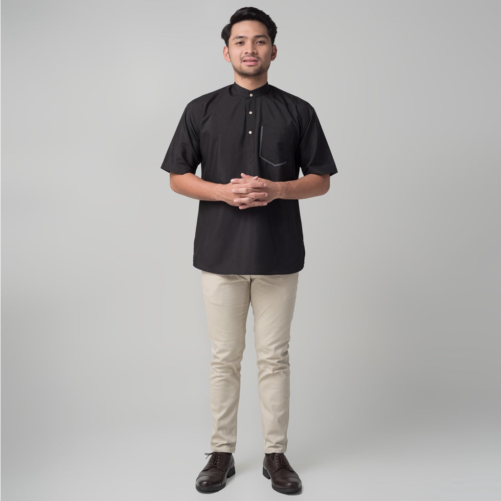 Benhill Kemeja Pria Koko Qurta Lengan Pendek Hitam 29948-3221H