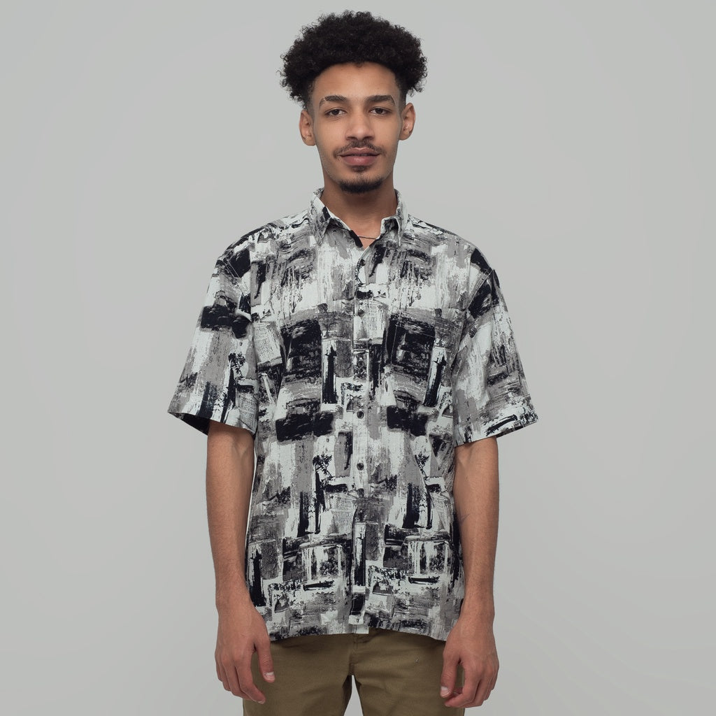Benhill Kemeja Pria Linen Printing Lengan Pendek Abu 28808-46602