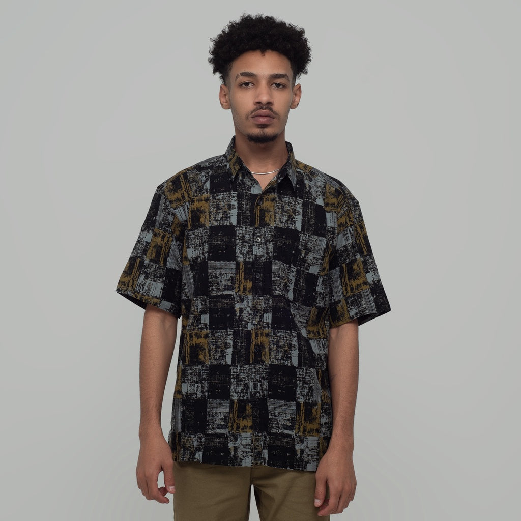 Benhill Kemeja Pria Linen Printing Lengan Pendek Black 28806-46202