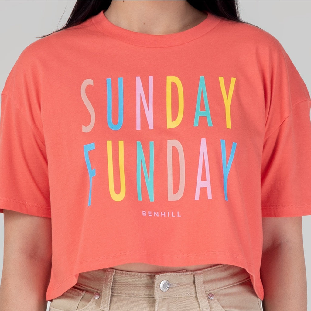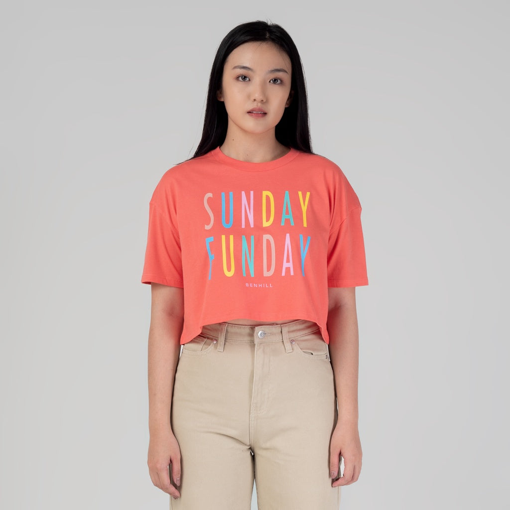 Benhill T-shirt Crop Grafis Katun 30s Combed Lengan Pendek Pink Salmon 608-29486